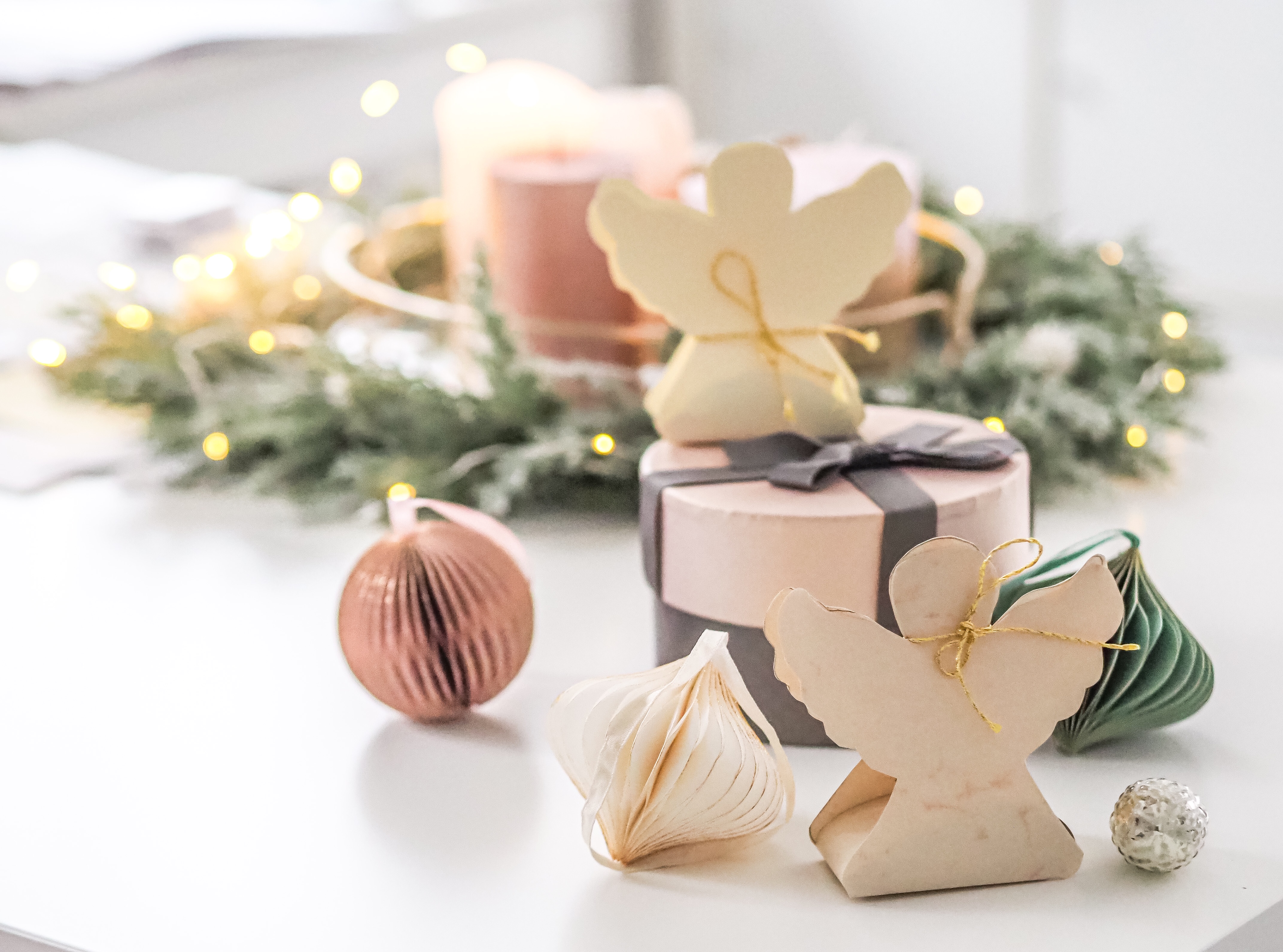 Schneidet die Vorlage aus und zeichnet sie mit einem Bleistift auf dem Tonpapier nach. Schneidet sie nochmals aus und radiert die Bleiftift-Spuren weg. Locht die beiden Schlaufen an der Seite und faltet jeweils die unteren Enden der Engelskleider. In der Mitte könnt ihr eine kleine Überraschung legen, z.B. eine Praline o.Ä. Jetzt bindet ihr mit einer Schnur die beiden Schlafen zusammen. Legt nun die beiden Engels-Körper aneinander und bindet diese auch an der Taille zusammenbinden.